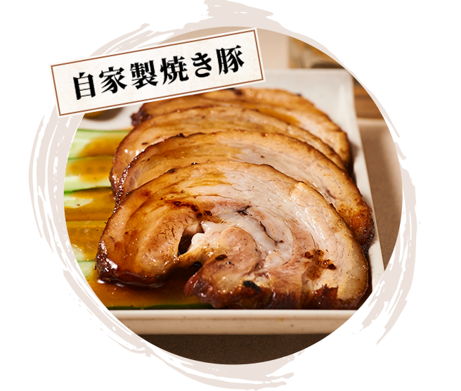 素材本来の旨みが詰まったチャーシューを、独自に配合したタレに漬け込みゆっくりと味を染み込ませます。
